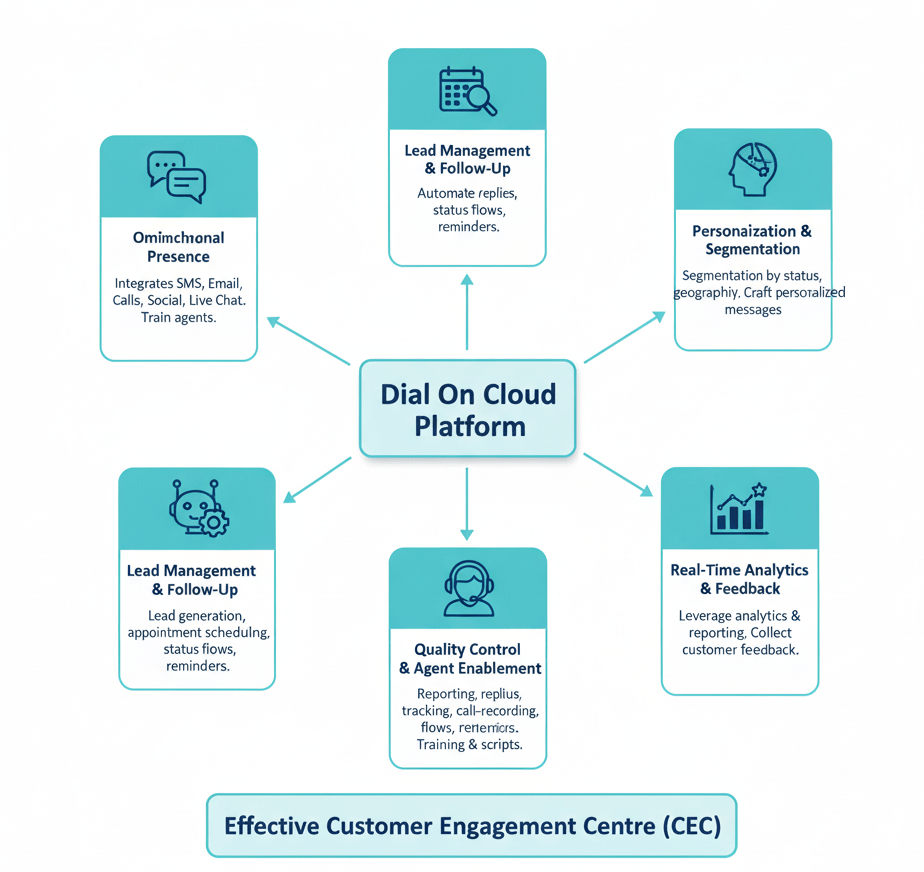 With DialOnCloud, businesses have much of the infrastructure needed: omnichannel communication, lead and status management, appointment tools, reporting, and automation. Build clearly defined processes, train your team, monitor outcomes, and iterate. Do this, and your Customer Engagement Centre can become a powerful driver of customer satisfaction, loyalty, and growth.